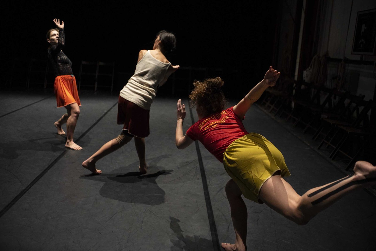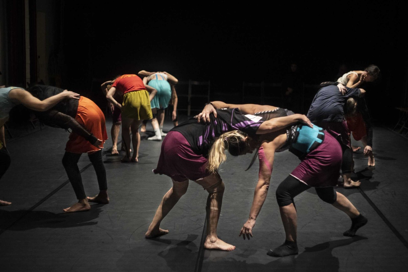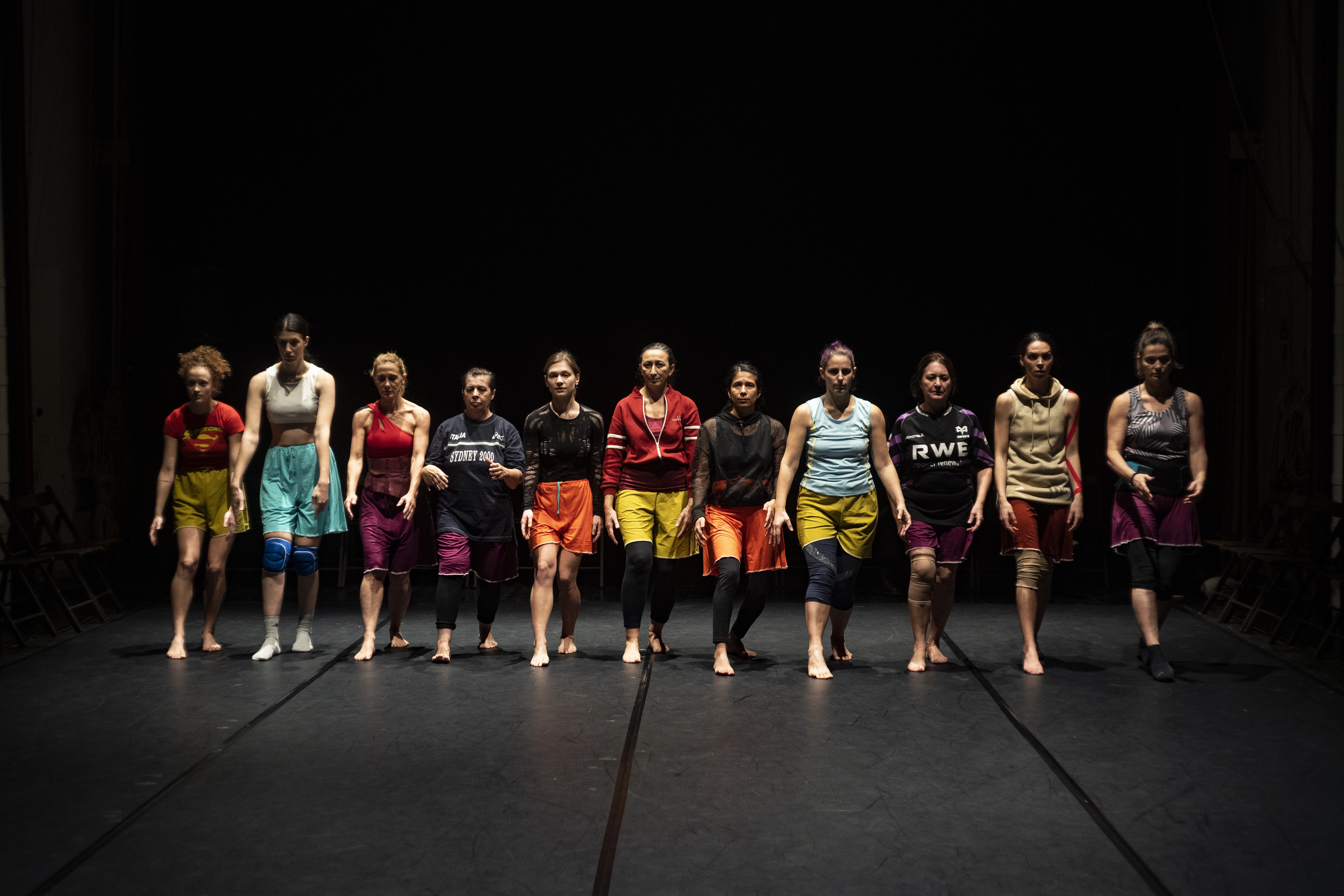 "The stage is filled with women of different ages who mingle with four dancers..."